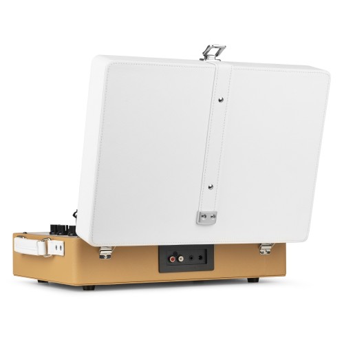 Atskaņojiet savu vinilu ar šo stilīgā dizaina RP119 ierakstu atskaņotāju. Šis augstas kvalitātes vintage stila atskaņotājs ir pārklāts ar stilīgu PU ādas apdari, kas apvienota ar greznu zelta krāsas skaļruņu grilu. RP119 bezvadu savienojumā ar skaļruņiem, austiņām un citām ierīcēm, kas aprīkotas ar BT bezvadu tehnoloģiju, vai ar vadu audio sistēmām un skaļruņiem ar barošanu. Iebūvētais BT uztvērējs ļauj arī bezvadu režīmā straumēt digitālo mūziku no viedtālruņa, planšetdatora vai citas ar BT saderīgas ierīces un klausīties to, izmantojot atskaņotājā iebūvētos stereo skaļruņus.