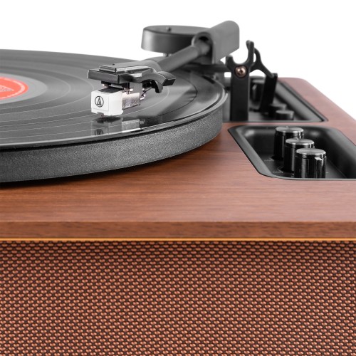 Audizio Laredo ir perfekts mūžīga dizaina un mūsdienīgu audio inovāciju apvienojums. Izgatavots ar greznu koka korpusu un aprīkots ar jaudīgu 160 W Hi-Fi skaļruņu sistēmu, šis augstākās klases skaņuplašu atskaņotājs nodrošina siltu, bagātīgu un detalizētu skaņu, kas paceļ katru vinila pieredzi augstāk. Ar divkāršu stereo divvirzienu skaļruņu sistēmu, kā arī pilnīgu skaļuma, augsto un zemo frekvenču kontroli, Laredo ļauj jums kontrolēt savu skaņu. Tā automātiskās apturēšanas mehānisms nodrošina vienmērīgu un bezrūpīgu atskaņošanu bez pārtraukumiem.