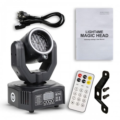 Meklējat veidu, kā piešķirt enerģiju savai ballītei, koncertam vai kluba pasākumam un radīt patiesi iespaidīgu apgaismojuma sistēmu? Light4Me Magic Head apvieno gobo, staru kūli, LED gredzenu un zaļo lāzeru vienā kompaktā ierīcē, radot dinamiskus starus, krāsainas animācijas un ieskaujošus apgaismojuma efektus. Pateicoties plašajam panorāmas un slīpuma kustības diapazonam, armatūra vienmērīgi skenē skatuvi, deju grīdu vai pasākuma telpu, radot profesionālu kluba, koncerta vai DJ šova atmosfēru. Tā ir lieliska izvēle dīdžejiem, grupām, klubiem, mobilo pasākumu uzņēmumiem un pasākumu organizatoriem, kuri vēlas ātri izveidot iespaidīgu apgaismojuma ainu.
